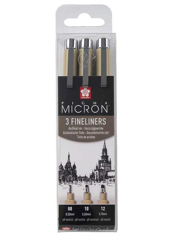 Ручки капиллярные черные 03шт "Pigma Micron" 0.5мм, 0.6мм, 0.7мм