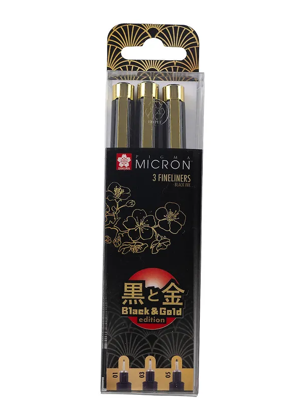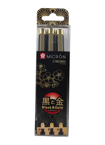Ручки капиллярные черные 03шт "Pigma Micron Gold Limited Edition" 0.1мм, 0.3мм, 0.5мм