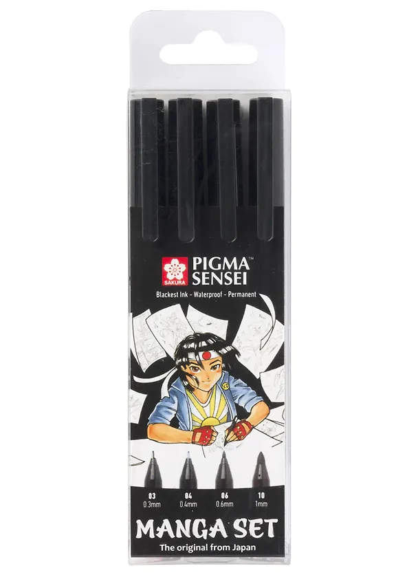 Ручки капиллярные черные 04шт "Pigma Sensei Manga"