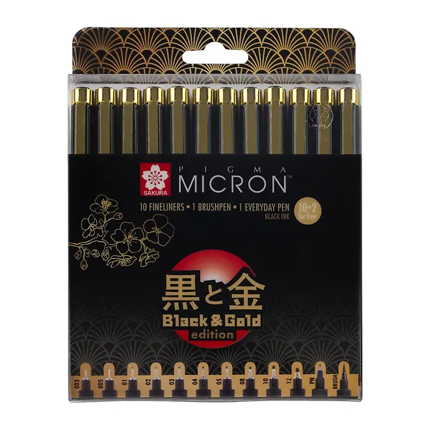 Линеры специальной лимитированной коллекции Pigma Black & Gold Edition, посвященной столетию бренда Sakura. В коллекции представлено 3 набора, которые будут доступны только в 2021 году.