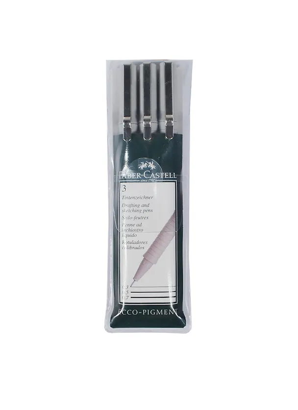 Ручки капиллярные черные 3шт (0.4, 0.6, 0.8мм) "ECCO PIGMENT", пластм. пенал, Faber-Castell