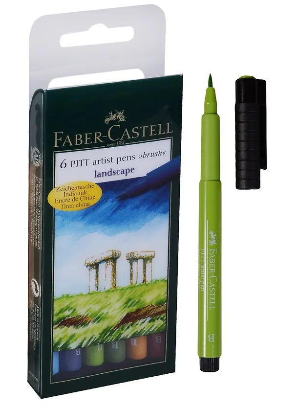 Ручки-кисточки капиллярные 6цв профессиональные "РITT" натуральные цвета Faber-Castell