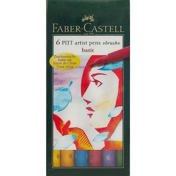 Ручки-кисточки капиллярные «Pitt», Faber-Castell, основные цвета, 6 штук