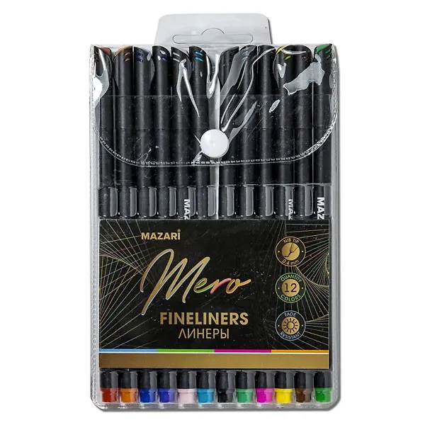 Ручки линеры Mazari, Mero, 12 цветов 0,4 мм