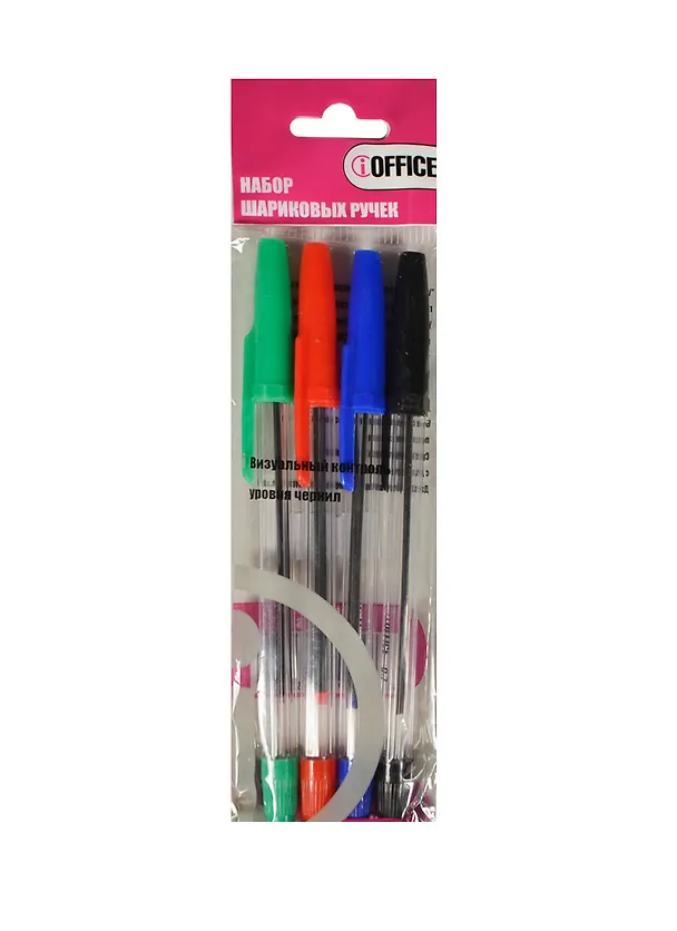 Ручки шариковые 04цв "iOffice" (зеленая, красная, синяя, черная) 0.7мм, европодвес, iOffice