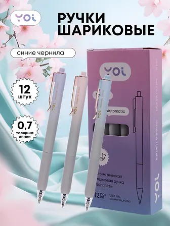 Ручки шариковые автоматические синие 12 штук "Sapphire" 0,7 мм, в ассортименте, Yoi