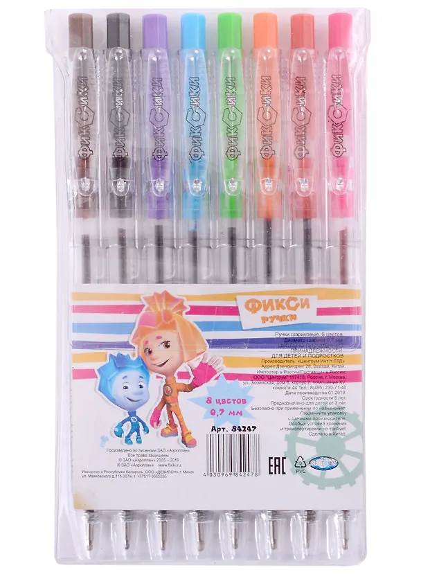 Ручки шариковые Centrum, "Фиксики", 8 цветов 0,7 мм