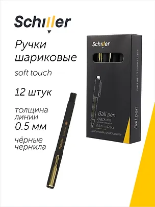 Ручки шариковые черные 12 штук "Supreme" 0,5 мм, soft touch, Schiller