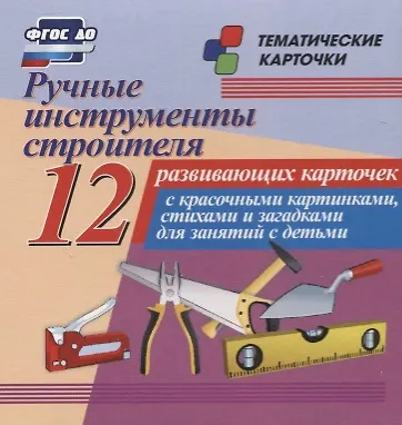 Ручные инструменты строителя. 12 развивающих карточек с красочными картинками, стихами и загадками для занятий с детьми
