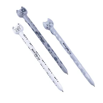 Симпатичная шариковая ручка с оригинальным оформлением механизма: на задней стороне ручки находится маленький хвост, и если за него дёрнуть, то выдвигается стержень - и можно писать. Дёрнешь кота за хвост ещё раз - и стержень задвигается обратно. :) Купила в основном за такое забавное оформление, хотя пишет она тоже хорошо.