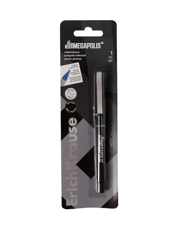 Ручка роллер черная "MEGAPOLIS" 1,0мм, блистер, подвес, ErichKrause
