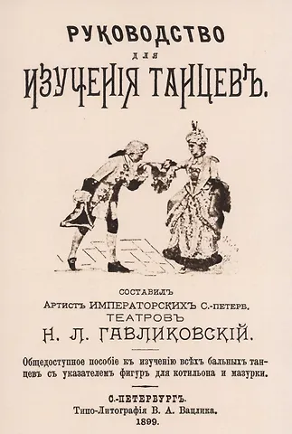 Николай Людвигович Гавликовский (1868-1922) - артист балета, балетовед; теоретик танца, танцмейстер. Гавликовский окончил Петербургское театральное училище в 1887 г. с похвальным листом, с 1899 г. был назначен учителем бальных танцев в этом же училище. Книга включает в себя наиболее распространенные бальные танцы и их описание: полонез, вальс в три и два па, венский вальс, польку, галоп, мазурку, кадриль, падекатр, краковяк, венгерка, котильон и том-тит. Гавликовский - автор двух танцев: шакона и миньона. В конце книги - терминологический словарь.