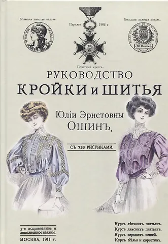 Репринт с издания. Москва. 1911. 733 рис. Содержание: 1. Курс детского платья: Черчение выкроек детских платьев для детей всех возрастов; Матроска для девочек, кофточка с бантами, сак-пальто и т.д.; Платья для мальчиков; Жилет, матросская блузка, костюм "Моцарт", пальто Меньшиков, гавелок и т.д.; Практические указания; Платье "ампир", гимназическая куртка и т.д.; 2. Курс дамских платьев: Венский лиф, английский лиф, немецкий лиф и т.д.; Рукава; Рукав английский, греческий рукав с двумя швами, бальный рукав с буфом и т.д.; Воротники; Практические указания; Шитье лифа, корсаж и его шитье и т.д.; Юбки; Юбка из семи частей, юбка-клеш из двух частей, юбка-"тальер" с кокеткой, юбка трубчатая венск