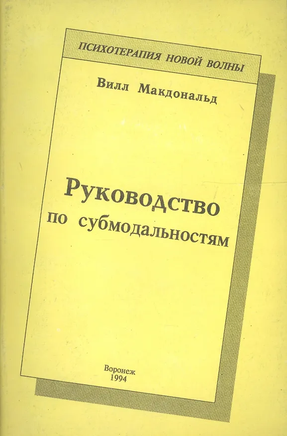 То, с чем мы собираемся экспериментировать в пределах широкого фрейма структуры человеческого субъективного опыта, называется субмодальностями. Модальности  это репрезентативные системы: визуальная, аудиальная, кинестетическая, обонятельная и вкусовая '. Мы получаем информацию из окружающего мира, используя наши пять чувств, и эти же самые пять чувств используются внутренне, чтобы обрабатывать информацию. Мы видим картины, слышим звуки и имеем ощущения изнутри.