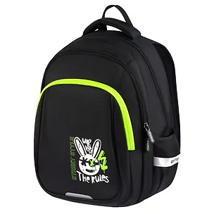 В рюкзаке предусмотрены 3 отделения и 2 боковых кармана. Внутри имеется 1 карман на резинке, 1 открытый карман и 1 карман из сетки на молнии. Эргономичная вентилируемая спинка, широкие регулируемые лямки и нагрудное крепление обеспечивают равномерное распределение нагрузки на позвоночник, а усиленное дно, плотная ручка для переноски и ручка-петля делают рюкзак максимально удобным. Световозвращающие элементы помогают обеспечить безопасность ребенка в темное время суток.
