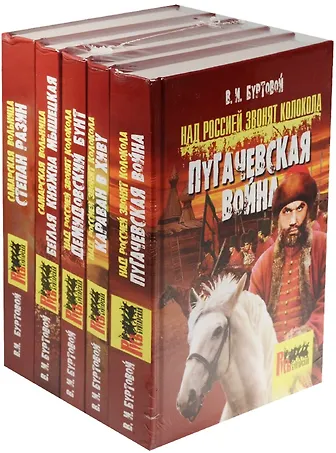 Комплект включает дилогию "Самарская вольница" о восстании донских казаков под предводительством Степана Разина и трилогию о событиях накануне и в период Крестьянской войны под предводительством Емельяна Пугачева "Над Россией звонят колокола". Строгая документальность в сочетании с авантюрно-приключенческой интригой делают романы интересными, как в историческом, так и художественном плане.