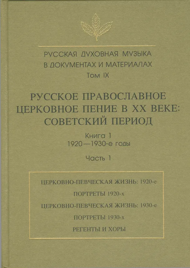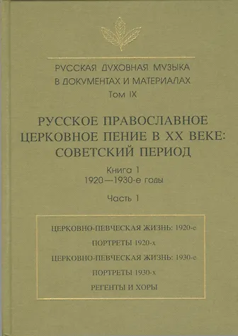Русская духовная музыка в документах и материалах. Том IX. Русское православное церковное пение в XX веке: советский период. книга 1. 1920-1930-е годы. Часть 1