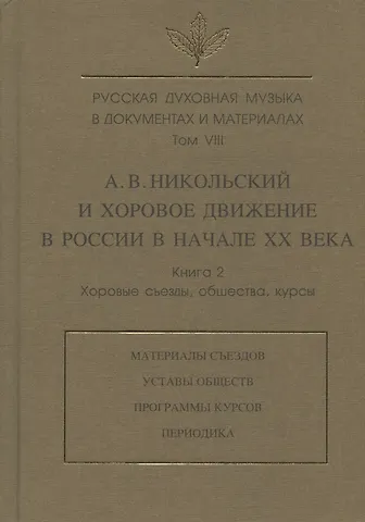 Русская духовная музыка в документах и материалах. Том VIII. А.В. Никольский и хоровое движение в России в начале XX в. Книга 2