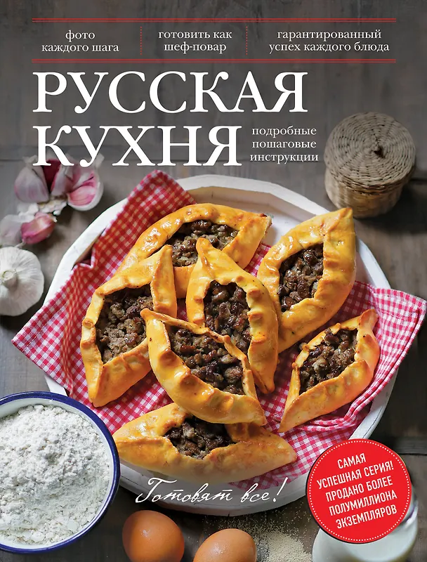Книги серии Готовят все! настоящая кладезь самых интересных рецептов, и тут не только авторские задумки, тут и те рецепты, которые прошли проверку временем и поколениями. Тысячи читателей оценили удобство книг серии Готовят все, где каждому шагу соответствует фото, с которым вы бежошибочно воспроизведете рецепт.