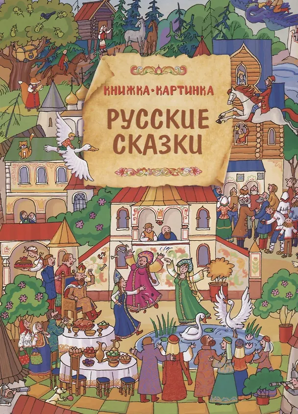 На страницах этой книги одновременно происходит множество удивительных событий. Катится по тропинке Колобок, летят гуси-лебеди, строит козни Баба-яга, едет на печи Емеля. С этой книгой можно бесконечно играть: находить знакомых сказочных героев и сочинять новые сказки.