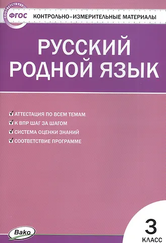 Издание содержит контрольно-измерительные материалы по предмету «Русский родной язык» для 3 класса. Порядок тем соответствует учебнику О. М. Александровой и др. Все задания составлены с учетом требований ФГОС начального общего образования. В пособии даны ответы и предложены способы оценивания тестовых заданий.