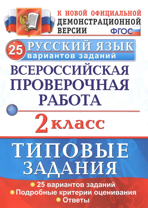 РУССКИЙ ЯЗЫК. ВСЕРОССИЙСКАЯ ПРОВЕРОЧНАЯ РАБОТА. 2 КЛАСС. ТИПОВЫЕ ЗАДАНИЯ. 10 вариантов заданий. Данное пособие полностью соответствует федеральному государственному образовательному стандарту (второго поколения) для начальной школы.