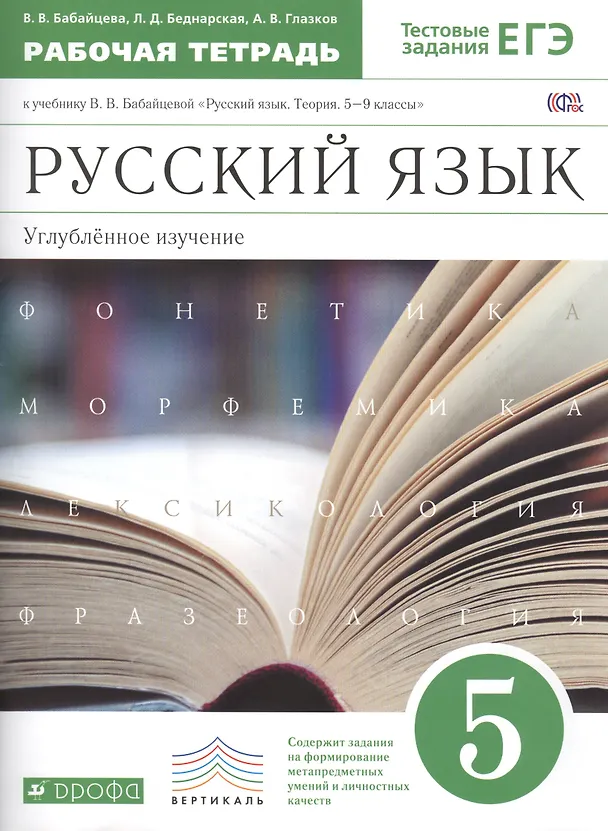 Русский язык 5 кл. Углубл. изуч. Р/т (к уч. Бабайцевой) (+2 изд) (мВертикаль) (мТестЗ ЕГЭ) Бабайцева (ФГОС)