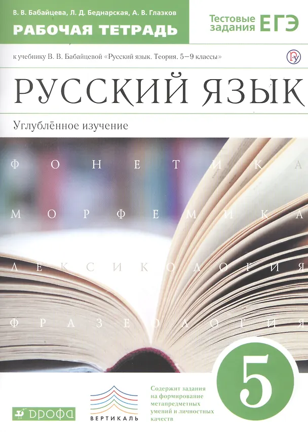 Рабочая тетрадь входит в учебно-методический комплекс для углубленного изучения русского языка, подготовленный под руководством профессора В. В. Бабайцевой: "Русский язык. Теория. 5-9 классы" (автор В. В. Бабайцева), "Сборник заданий по русскому языку. 5 класс" (авторы В. В. Бабайцева, Л. Д. Беднарская, Н. В. Дрозд), "Русский язык. Диагностические работы. 5 класс" (автор И. Н. Политова). Однако рабочая тетрадь представляет