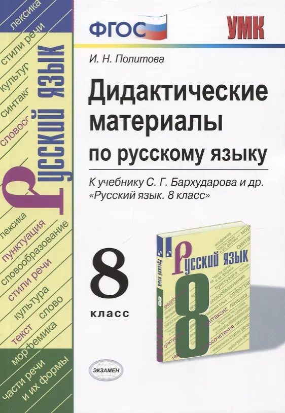 Пособие составлено на основе методической системы учебника С. Г. Бархударова и др. «Русский язык. 8 класс», имеющему гриф Министерства просвещения РФ и входящему в Федеральный перечень учебников.