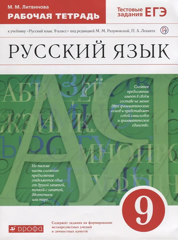 Рабочая тетрадь входит в состав УМК по русскому языку под редакцией М. М. Разумовской, П. А. Леканта и соответствует ФГОС основного общего образования.