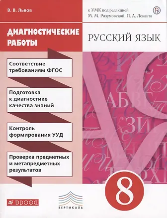 Валентин Львов «Русский язык. Диагностические работы к УМК. 8 класс» и выбрать удобный способ его получения: самовывоз, доставка курьером