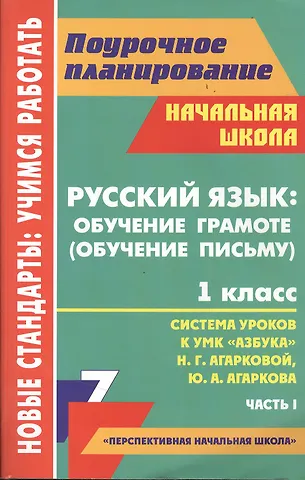 В пособии представлены поурочные разработки по курсу "Русский язык: Обучение грамоте (обучение письму)" для 1 класса, составленные в соответствии с положениями ФГОС и ориентированные на работу с тетрадями по письму "Азбука" Н. Г. Агарковой, Ю. А. Агаркова (М.: Академкнига/Учебник, 2012), входящими в УМК "Перспективная начальная школа". В рамках урока сформулированы педагогические задачи, обозначены планируемые результаты освоения темы, позволяющие компетентно смоделировать образовательный процесс. Предназначено учителям начальных классов общеобразовательных учреждений, может быть полезно слушателям ИПК, студентам педагогических учебных заведений.