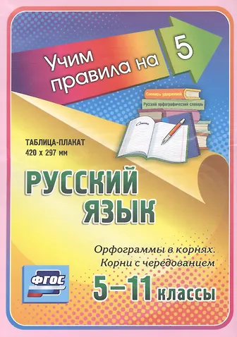 Русский язык. Орфограммы в корнях. Корни с чередованием. 5-11 классы. Таблица-плакат
