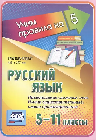 Русский язык. Правописание сложных слов. Имена существительные, имена прилагательные. 5-11 классы. Таблица-плакат