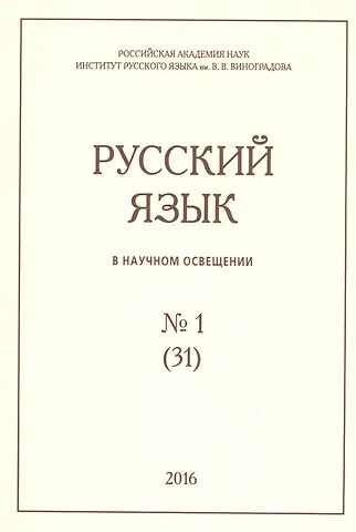 Вашему вниманию предлагается издание "Русский язык в научном освещении № 1 (31) 2016".