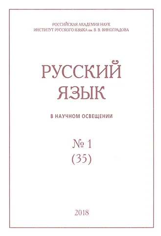 Вашему вниманию предлагается издание "Русский язык в научном освещении № 1 (35) 2018".
