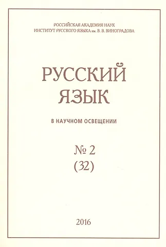 Вашему вниманию предлагается издание "Русский язык в научном освещении № 2 (32) 2016".