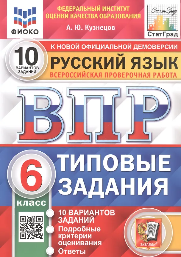 ВПР. Русский язык. 6 класс. Типовые задания. 10 вариантов заданий. Подробные критерии оценивания. Ответы