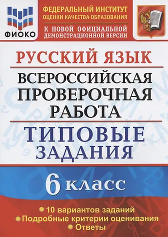 Русский язык. Всероссийская проверочная работа. 6 класс. Типовые задания. 10 вариантов заданий. Подробные критерии оценивания. Ответы