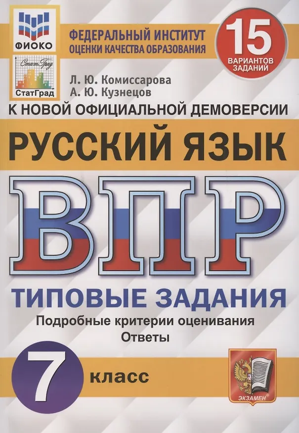 Русский язык. Всероссийская проверочная работа. 7 класс. Типовые задания. 15 вариантов заданий. Подробные критерии оценивания