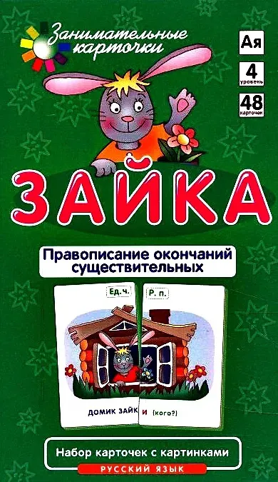 Занимательные карточки. Зайка. Правописание окончаний существительных. Штец А.А.
