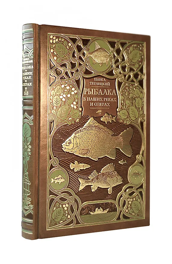 Рыбалка в наших реках и озёрах. Иллюстрированное коллекционное издание в изящном переплёте ручной работы, украшенном тремя видами тиснения