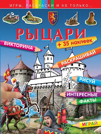 Сборник игр и раскрасок с наклейками «Рыцари» - это красочная книга, которая обеспечит юному любителю замков и рыцарских турниров несколько часов увлекательного времяпрепровождения, и каждая страница этой книги откроет что-то новое и интересное для любого младшего школьника. В этой книге есть раскраски разных видов, в том числе разворотная - довольно сложная раскраска по цветовому коду. А еще книга поможет научиться рисовать пеших и конных рыцарей, здесь есть непростые головоломки на поиски отличий, очень интересная познавательная викторина, тесты с наклейками и всеми любимое рисование по точкам. Так что смело открывайте книгу - вас ждет целый мир рыцарских развлечений.