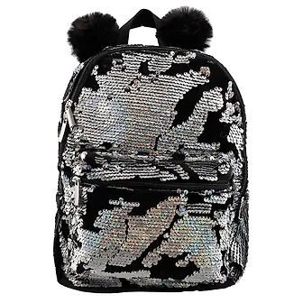 Рюкзак арт.48757 СЕРЕБРЯНЫЙ (без наполнения, 29х22х12, два отделение, полиэстер, расшитый ПВХ-пайетками, подкладка, лямки, регулируемые по длине, молния, один, уплотнённая спинка, уплотнённое дно,печать шелкографией, ПЭТ-пакет)