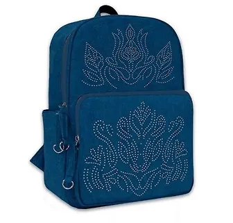 Рюкзак арт.46673 УЗОРЫ ГОЛУБОЙ (без наполнения, 35х26х16, одно отделение, хлопчатобумажная джинсовая ткань, регулируемые по длине, молния, три кармана, патерн из клепок, ПЭТ-пакет)