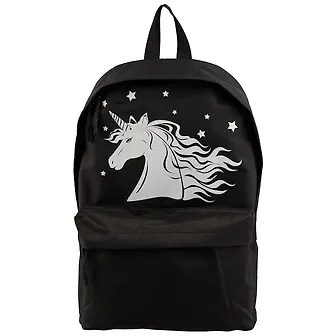 Рюкзак арт.49637 ЕДИНОРОГ И ЗВЕЗДЫ (42х15х32, одно отделение, черный, искусственная кожа, принт, светящийся в темноте, молния, один карман, уплотненная спинка с поролоном, печать шелкографией, ПЭТ-пакет)