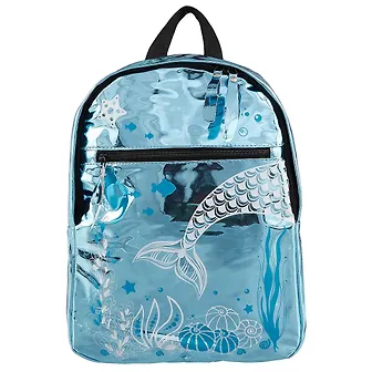 Рюкзак арт.49496 РУСАЛОЧКА (без наполнения, 36х27.5х10, одно отделение, искусственная кожа, голубой , "собачка из искусственной кожи", лямки, регулируемые по длине, молния, один карман, уплотённая спинка, печать шелкографией, мешок+ПЭТ-пакет)
