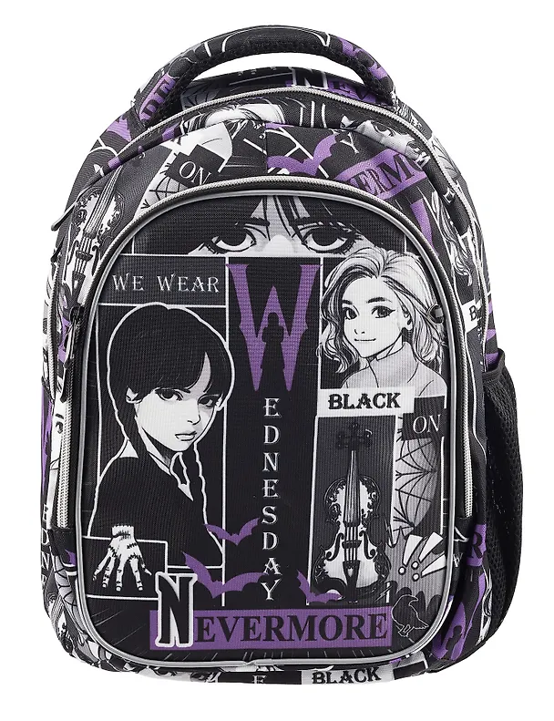 Рюкзак облегченный "Вэнсдэй". Удобный, практичный, а главное долговечный рюкзак соответствует всем заявленным нормам качества и безопасности. Изготовлен с максимальной заботой о детском здоровье, оснащен эргономичной анатомической спинкой. Данная особенность позволяет равномерно распределить нагрузку по позвоночнику, тем самым предотвращая нарушение осанки, обеспечивая максимальный комфорт при носке. Прочные материалы и качественная фурнитура обеспечивают надежность и долговечность. Мягкие широкие лямки легко регулируются по длине и высоте, позволяя подгонять рюкзак под индивидуальные размеры ребенка. Для дополнительной фиксации имеется застежка спереди. Два отделения дополнены молниями с дв