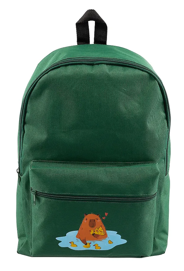 Сын просто обожает капибар и, конечно, мимо этого рюкзака пройти тоже не смог. Несмотря на то, что рюкзак очень простой, он достаточно вместительный и удобный. В основной отсек легко вылезают все учебники,  тетради и папки, а маленький передний кармашек отлично подходит для разных мелких вещей, которые должны быть под рукой. Сын ходи счастливый, это главное) Покупкой остались довольны.
