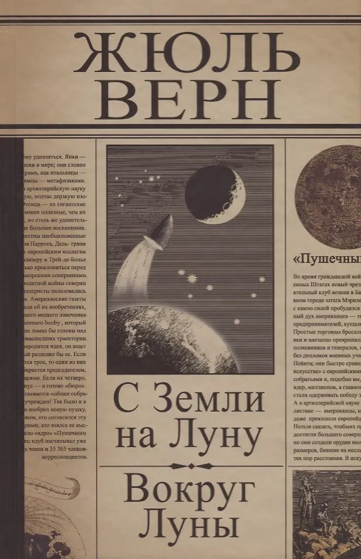Два романа в одном томе. Это первый и второй из "лунной" трилогии. Третий (продолжение) - Вверх дном, уже в другой книге. Обложка твердая матовая, с дизайном под вырезку из газеты, форзац украшен иллюстрацией с картой Луны. Перевод выполнен Марко Вовчок. Страницы белые, просвечивают. Шрифт средний. В конце книги есть несколько разлинованных страниц "для заметок". Переплет доволньо крепкий, прошитый.